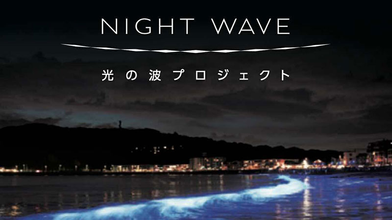 海岸の白波を美しい光の彫刻へと変える「NIGHT WAVE」は、演出家や照明デザイナーらによって生み出されたアート作品です。世界でも稀なこの表現は、神奈川県の逗子市で生まれ、新しい海岸演出として株式会社NIGHT WAVE社がプロデュースしています。