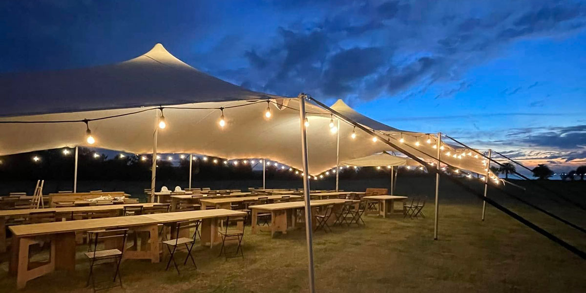 NIGHT WAVEに最も近い場所に展開する、グランピングテントのプライベートシート。